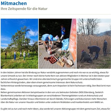 NABU (Naturschutzbund Deutschland), Regionalverband Weimar/Apolda e.V., Ernst-Toller-Straße 2c, 99425 Weimar, Mail: nabu-weimar@web.de