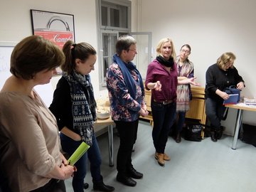Freiwilligenkoordinatorin Annette Eberhardt beginnt und stellt verschiedene Einsatzmöglichkeiten für Freiwillige beim Lebenshilfe-Werk vor. Hier werden vor allem Freizeitbegleiter für Kinder und betreute Erwachsene sowie Paten für Senioren mit Behinderung gebraucht, aber auch Zeitungsmacher und Redakteure für das Lebenshilfe-Magazin „mittendrin“.