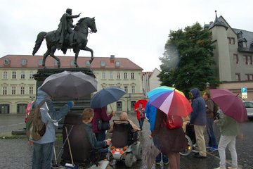 10 Jahre lang hatten die Aktiven des Weimarer Freiwilligentages Glück mit dem Wetter. Im Jahr 11 öffnete der Himmel ausnahmsweise seine Pforten und testete die Hilfsbereitschaft der angemeldeten Freiwilligen unter neuen, regnerischen Bedingungen.