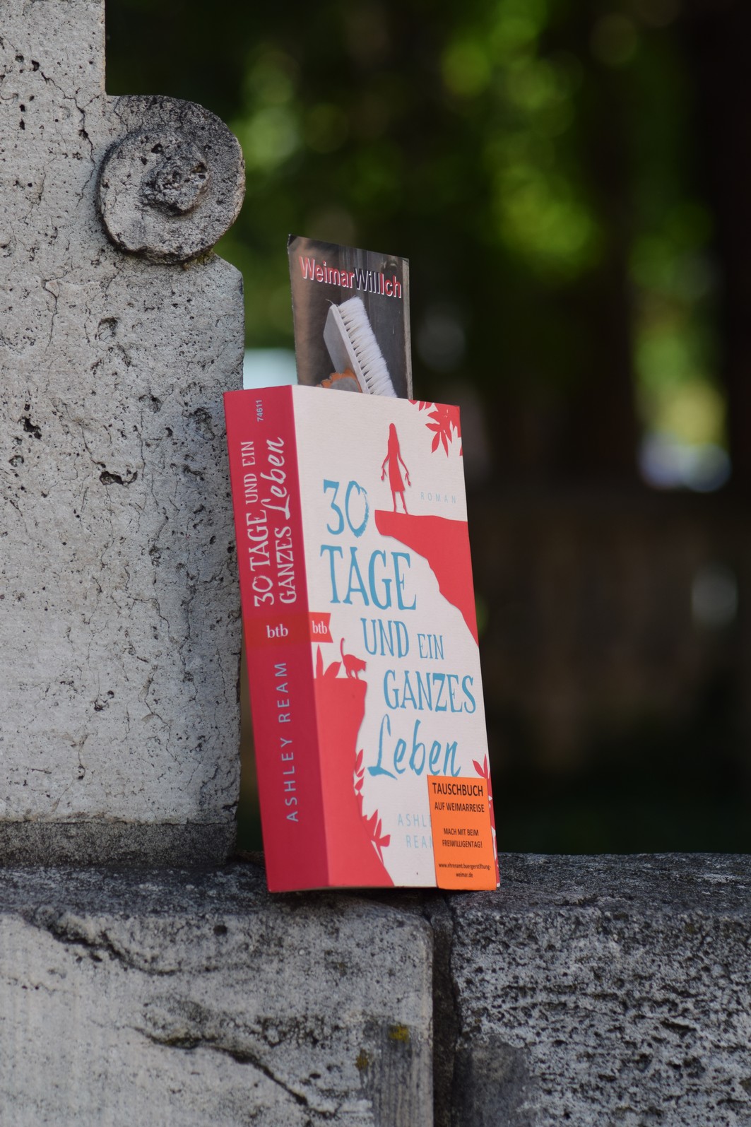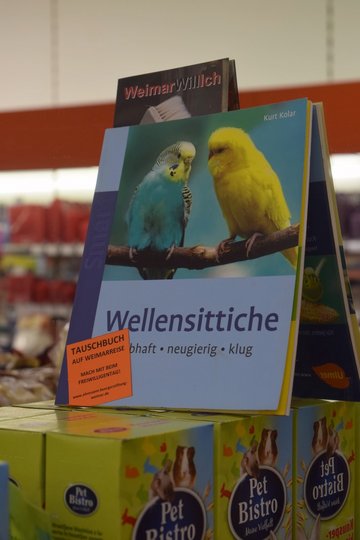 Tauschbuch auf Weimartour. Nimm es, lies es und lass es wieder frei! Rund 100 Bücher wurden auf diese Weise in die Freiheit entlassen.