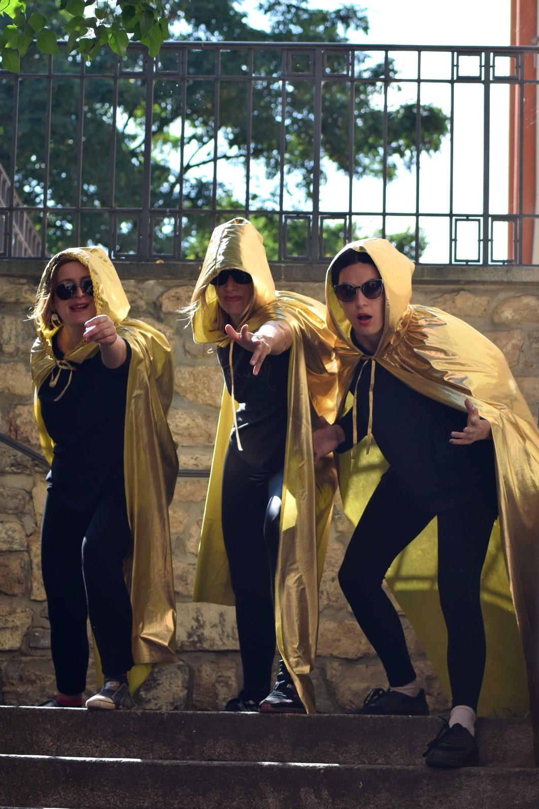 Ein Buch kann auch als Werbeträger dienen. Mit einem feschen Aufkleber versehen und einem Lesezeichen mit Hinweis auf den nahen Freiwilligentag, verteilt von drei goldenen Superheldinnen.