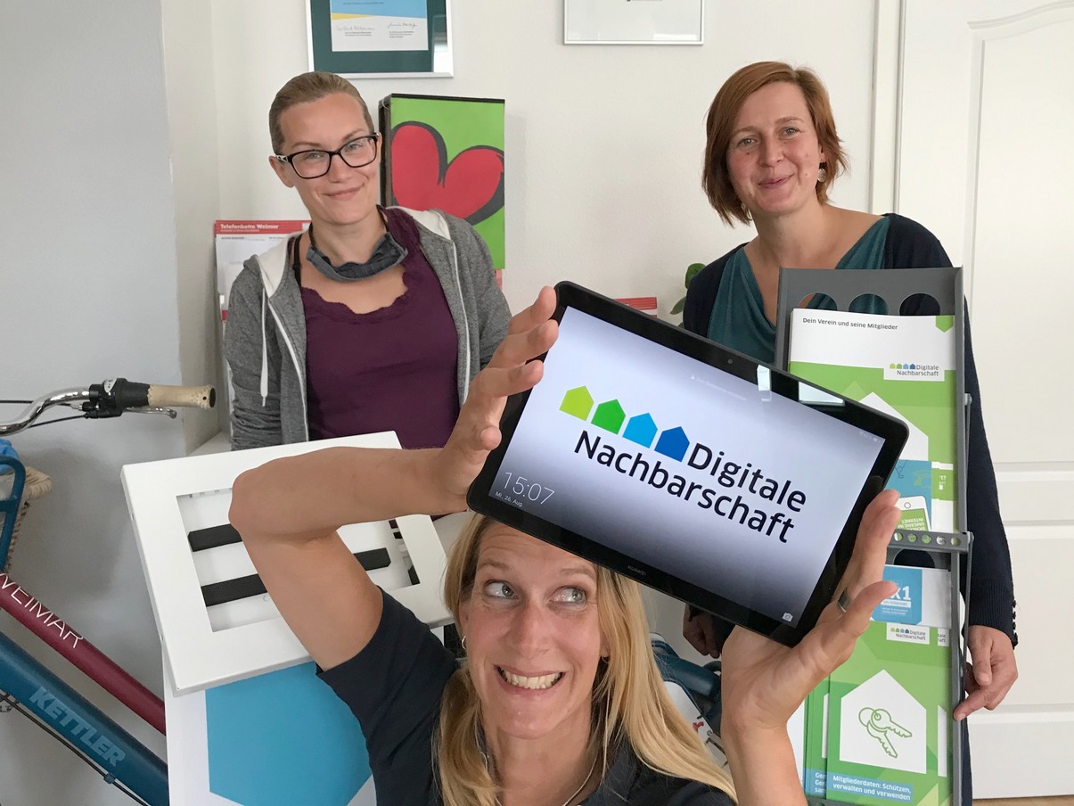 Vorinstalliert sind darauf die wichtigsten Infos zu Themen der Digitalen Nachbarschaft. Auch sonst ist es ein vollwertig nutzbares Mobilgerät, das wir im Beratungsalltag der EhrenamtsAgentur gut gebrauchen können und von dem auch die Kolleginnen vom Seniorenbegleiter-Angebot „Weimars Gute Nachbarn“ profitieren.