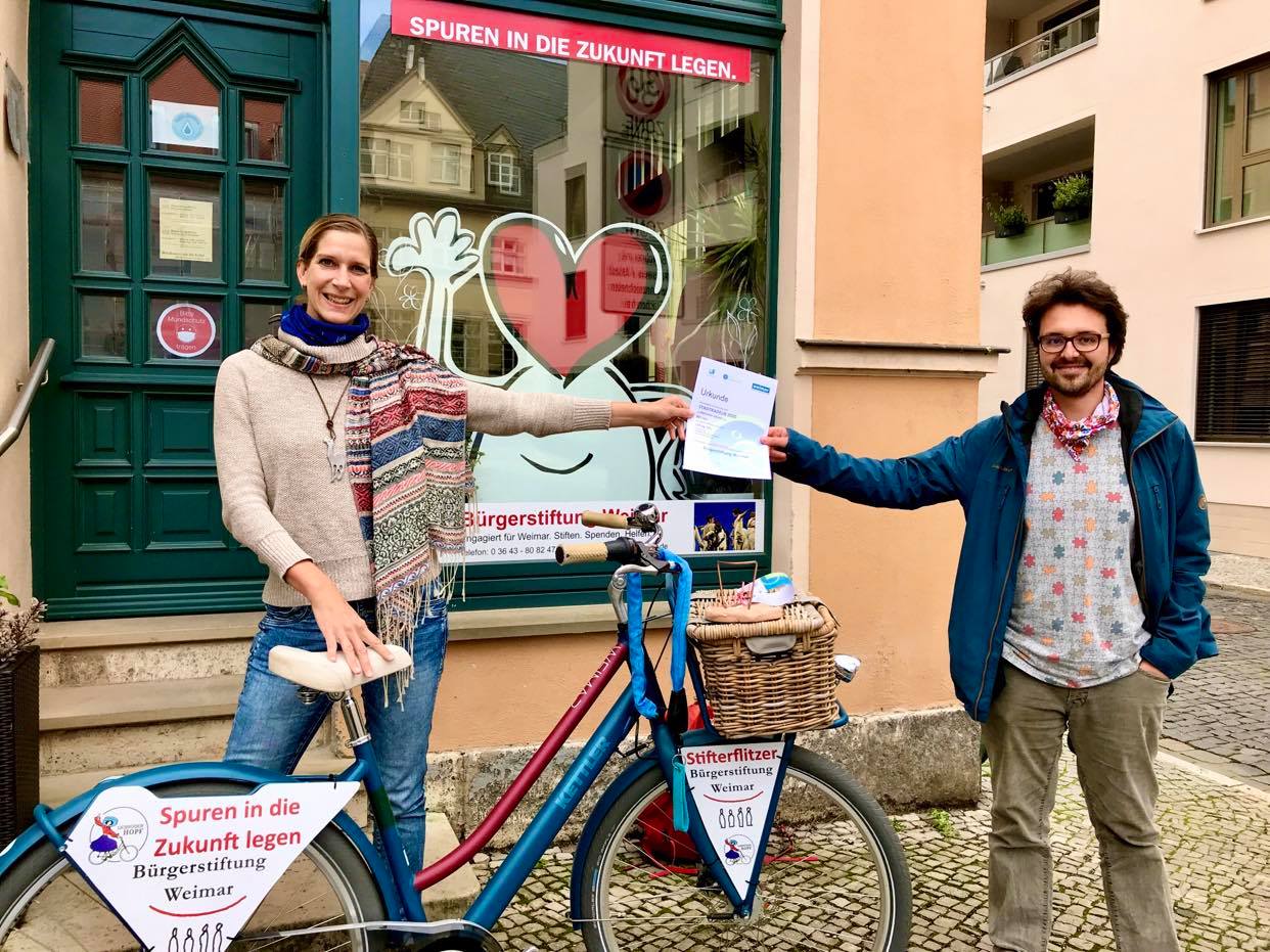 Das Team der Bürgerstiftung belegt in der Kategorie radelaktivster Verein Platz 3. Tobias Keppler, Beauftragter der Stadt für Klimaschutz und Nachhaltigkeit, überbrachte uns persönlich die Urkunde und den von der Landenberger Schülerfirma gestalteten Preis. Vielen Dank!