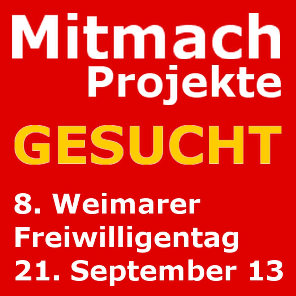 Einsatzstellen für den 8. Weimarer Freiwilligentag bis zum 5. Juli in der EhrenamtsAgentur anmelden!