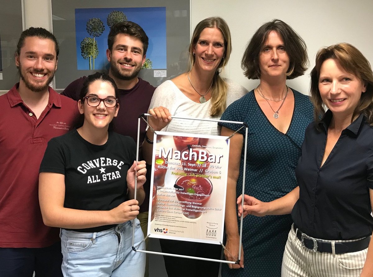 „Schule ohne Rassismus - Schule mit Courage“ ist das größte Schulnetzwerk Deutschlands. Bundesweit setzen sich dabei Schüler für ein demokratisches Miteinander an Schulen und gegen Diskriminierung und Gewalt ein. Für Thüringen ist die Europäische Jugendbildungs- und Begegnungsstätte Weimar die koordinierende Stelle. Sie hilft bei der Organisation und Durchführung von Courage-Aktionen vor Ort. Arlett Symanowski, Projektkoordinatorin bei der EJBW, stellte das Courage-Projekt im Rahmen der MachBar vor. Hier werden dringend Praktikanten gesucht, die an zwei Tagen pro Woche bei Veranstaltungen und deren Organisation mitarbeiten möchten. Ebenso werden Helfer für Einlass, Ausschank, Dokumentation oder die Vor- und Nachbereitung von Courage-Veranstaltungen gesucht.