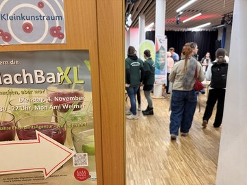 Warum MachBar XL? Eine großzügige Förderung der Thüringer Ehrenamtsstiftung und Staatskanzlei ermöglichte der EhrenamtsAgentur Weimar den Gästen mehr Programm, mehr Essen und mehr Zeit zum Schnacken und Netzwerken anzubieten und den runden Agentur-Geburtstag gebührend zu feiern.