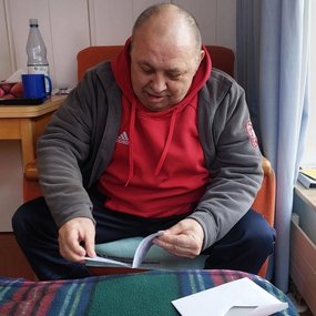 Die erste Lieferung erhielt das Friedrich-Zimmer-Haus (Diakonie) in der Rosenthal-Strasse. Regine Süß war ganz gerührt von den vielen schönen Briefen. Das Haus ist auf demenzerkrankte Menschen spezialisiert. Für die Bewohner wurde deshalb vor allem Gebasteltes zum Anfassen ausgesucht. Auch der Pflegedienst 360° - ambulante Pflege des twsd freut sich über die willkommene Ergänzung zu den üblichen Geburtstagskarten, die ihre betreuten Senioren sonst erhalten. Henry Bache, DRK-Kreisverband am Weimarer Rollplatz, übergibt die 174 Briefe an die Weimarer Einrichtungen des DRK.