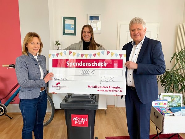 Am 14.1. übergab Jörn Otto, Geschäftsführer der Stadtwerke und Stadtwirtschaft Weimar, aufgerundete 2.000 € Spendensumme für 1.800 Zusendungen der vergangenen Wichtelpostaktion offiziell an die EhrenamtsAgentur der Bürgerstiftung.